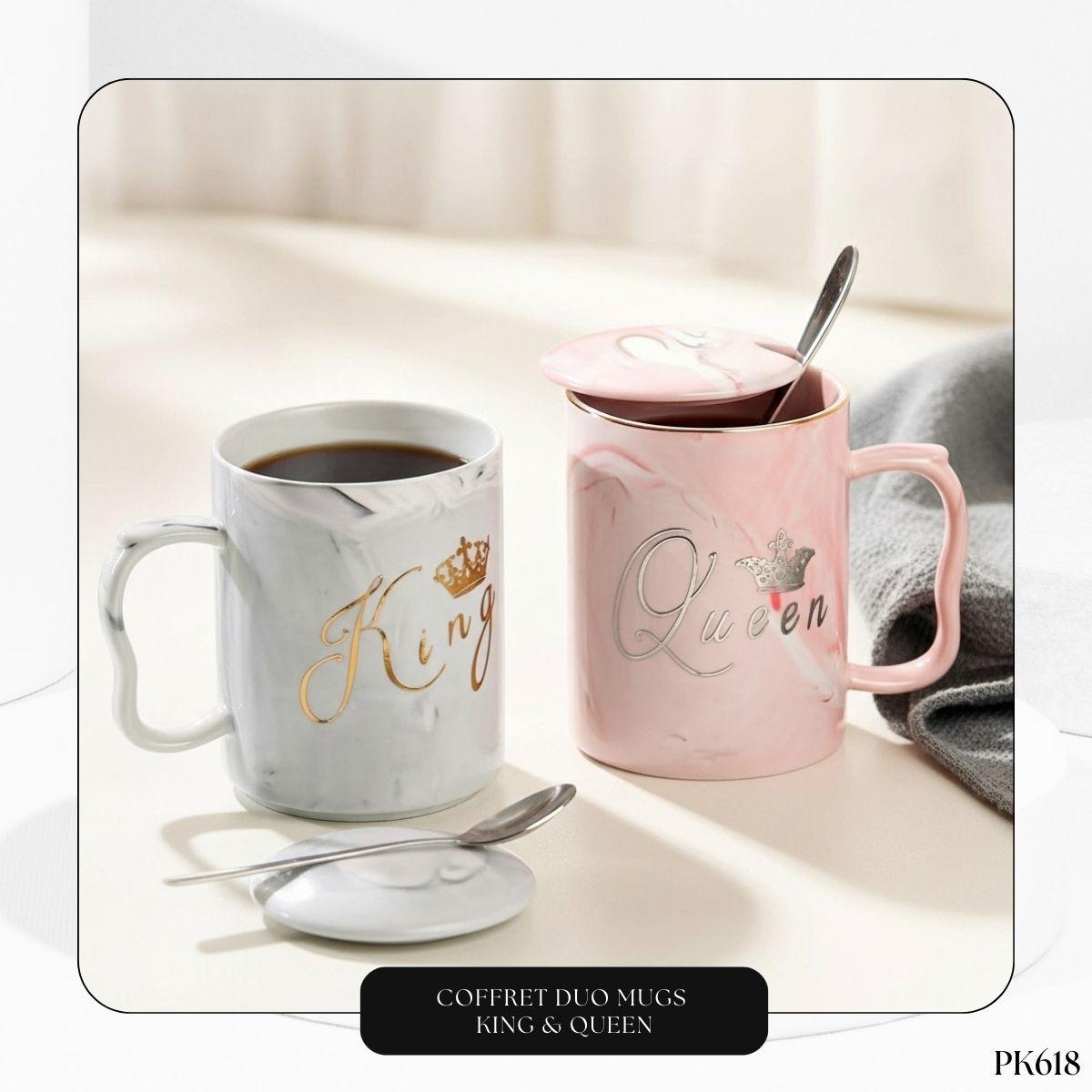 Cet Ensemble de Mugs en Céramique « King & Queen » est le cadeau parfait pour célébrer l’amour, les anniversaires de mariage, la Saint-Valentin ou simplement pour faire plaisir à un couple spécial. Chaque mug est une pièce unique alliant design élégant et fonctionnalité.