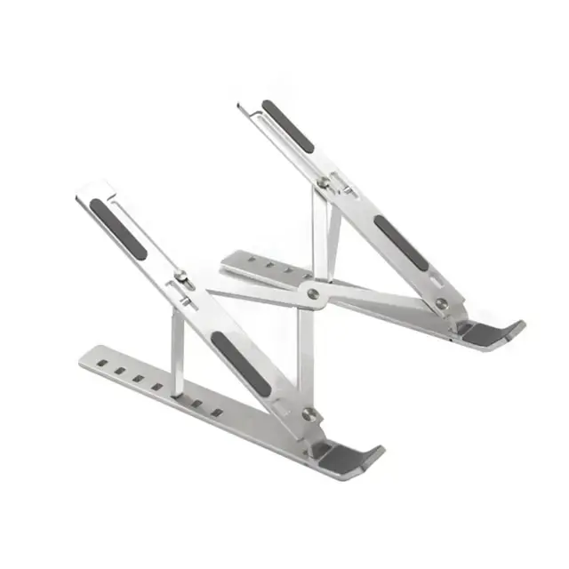 Sturdy and Portable.The computer stand is entirely made of thickened aluminum alloy, so the stand is sturdy. The rubber on the holder hands sticks tightly and ensure your laptop stable on the stand. And the rubber feet prevent the stand from slipping on your desktop.