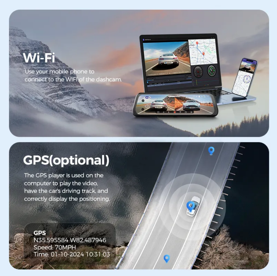 Avec ses caméras avant et arrière en 1080p et son écran tactile de 10'', cette caméra de bord offre des fonctionnalités avancées pour assurer une sécurité routière supérieure, de jour comme de nuit. Conçue pour les conducteurs modernes, elle est l'outil idéal pour une conduite plus sûre.
