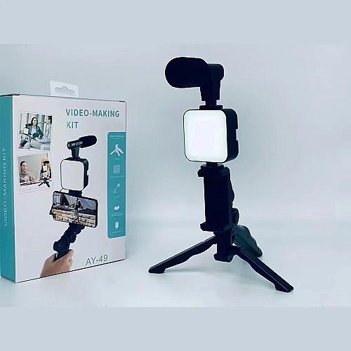 Kit de vlogging complet avec lampe LED, microphone, trépied et support