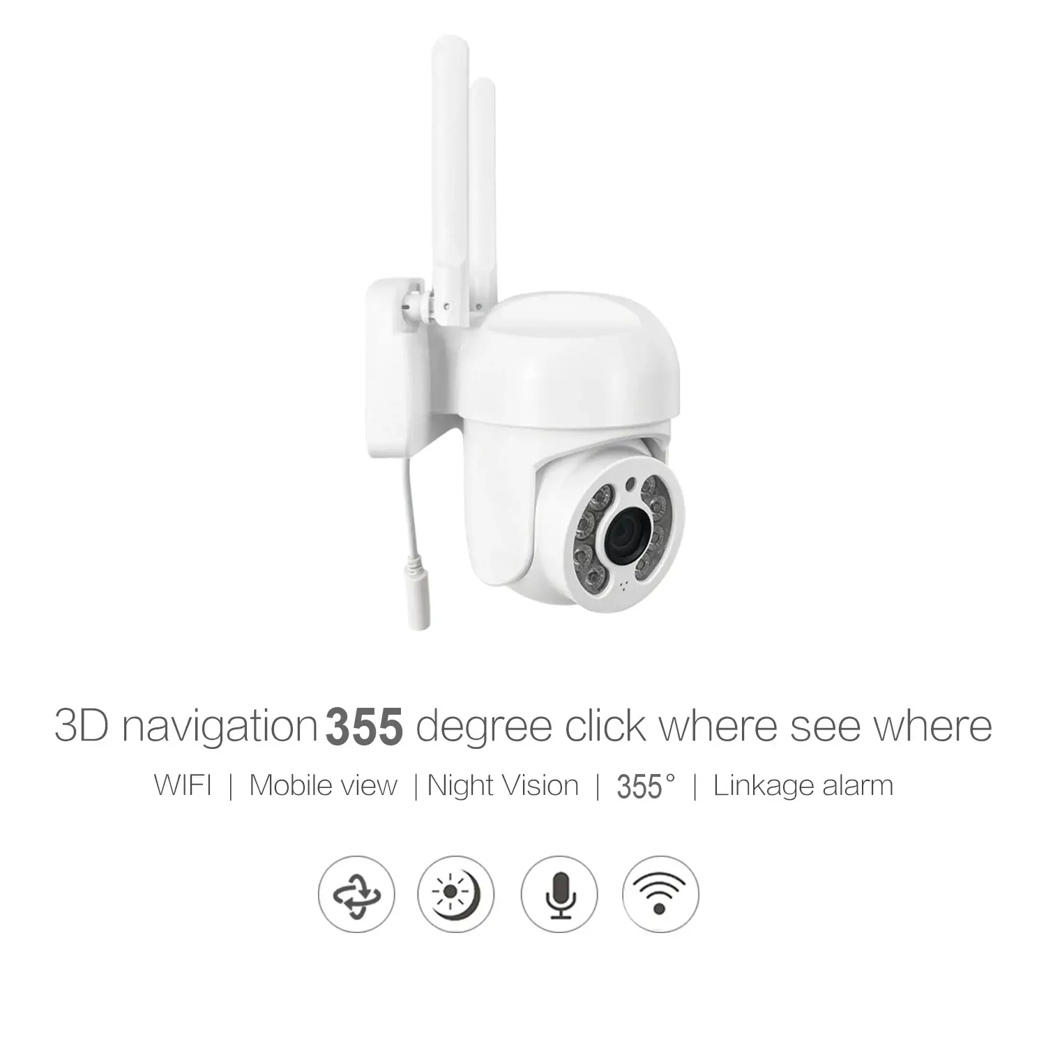 PTZ: rotates 355 degrees left and right and rotates 90 degrees vertically;