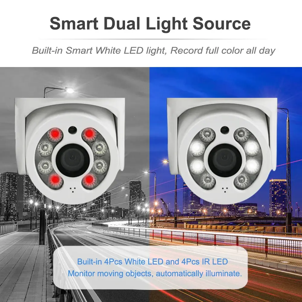 Support White light full color, color night vision is clear; Three modes preview, White light full color infrared night vision double light warning;