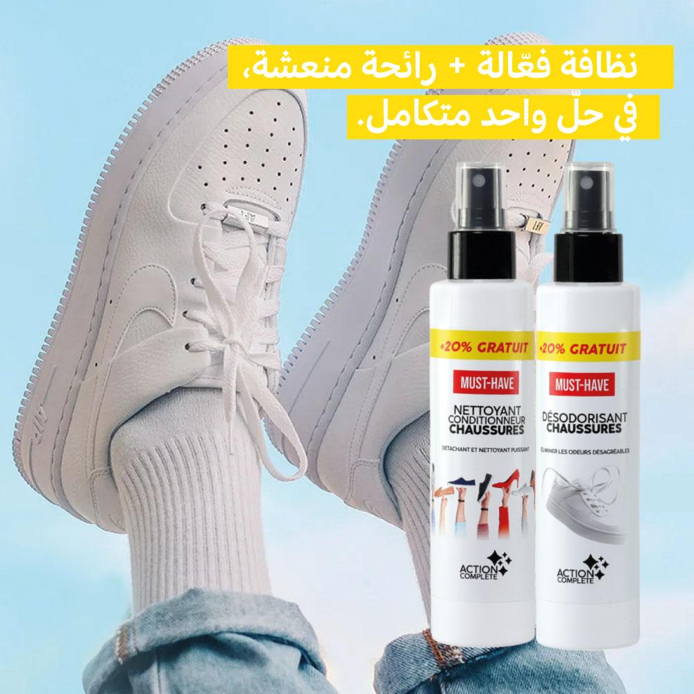 مع باك العناية المتكاملة، ستحصل على منتجين أساسيين يمنحان حذاءك مظهراً نظيفاً ورائحة منعشة تدوم:
