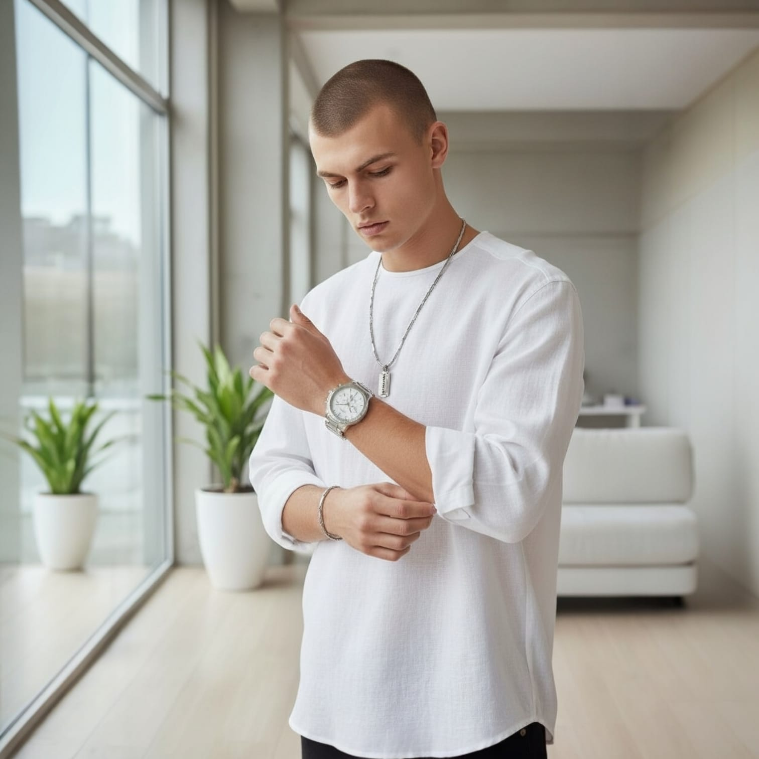 Son design robuste, inspiré des modèles chronographes, en fait la pièce parfaite pour un homme sûr de lui et moderne.