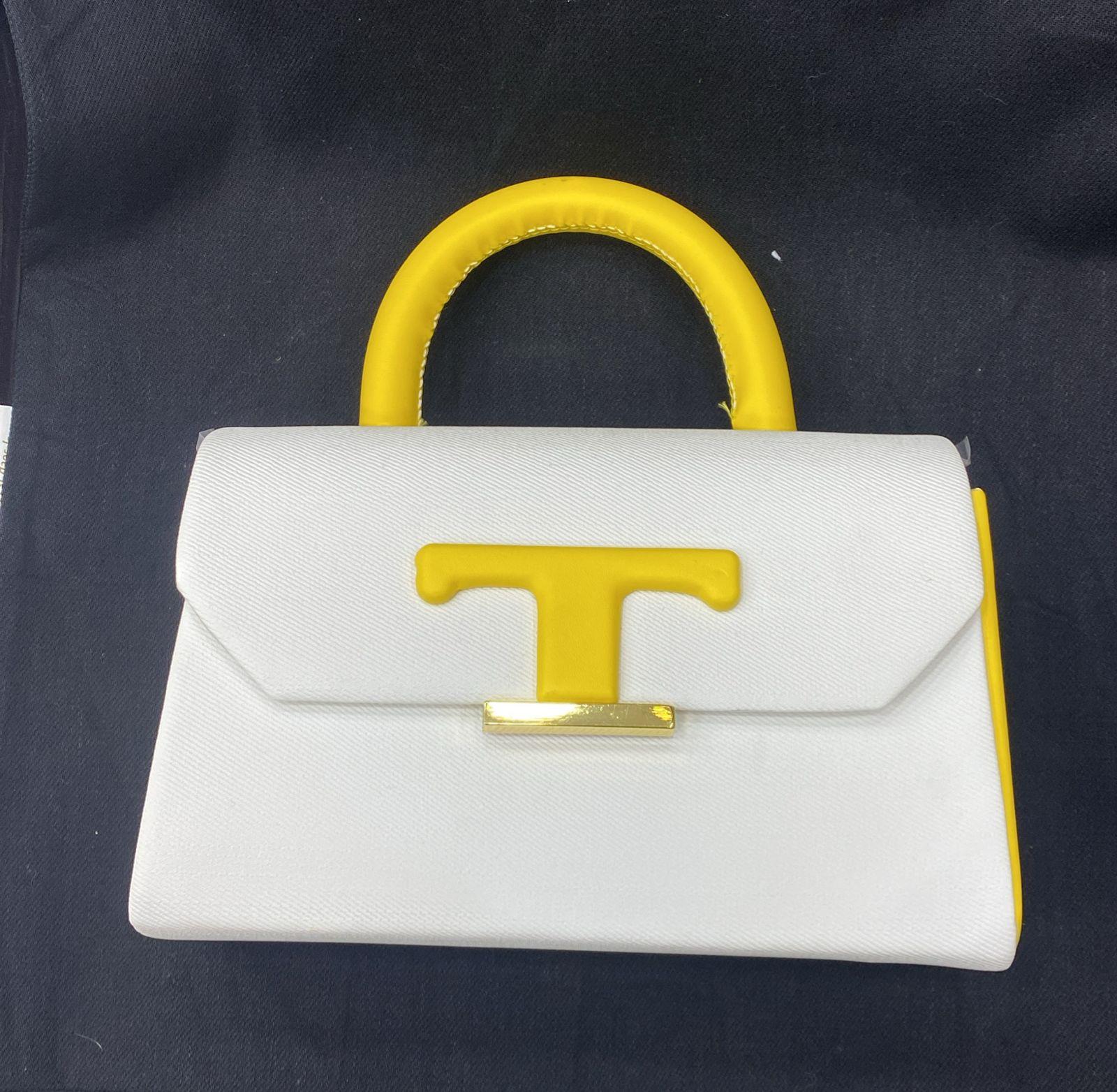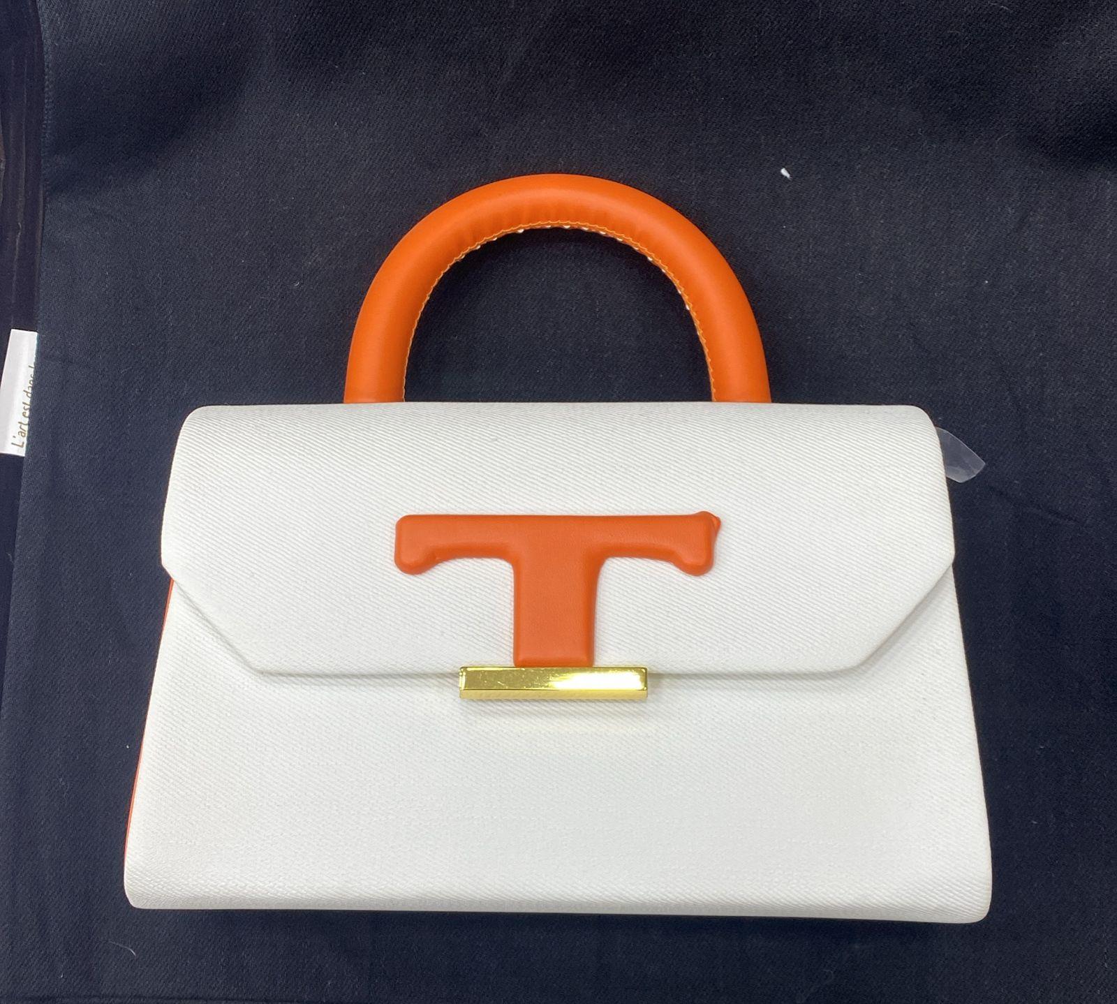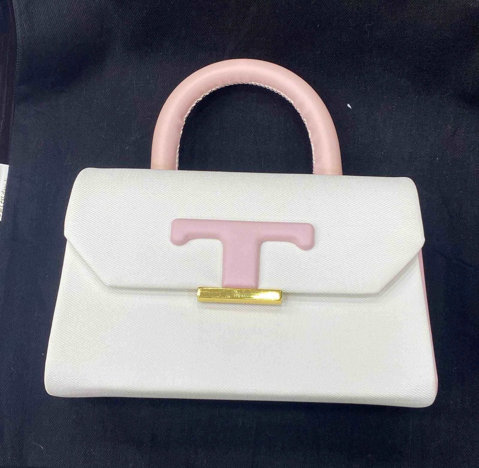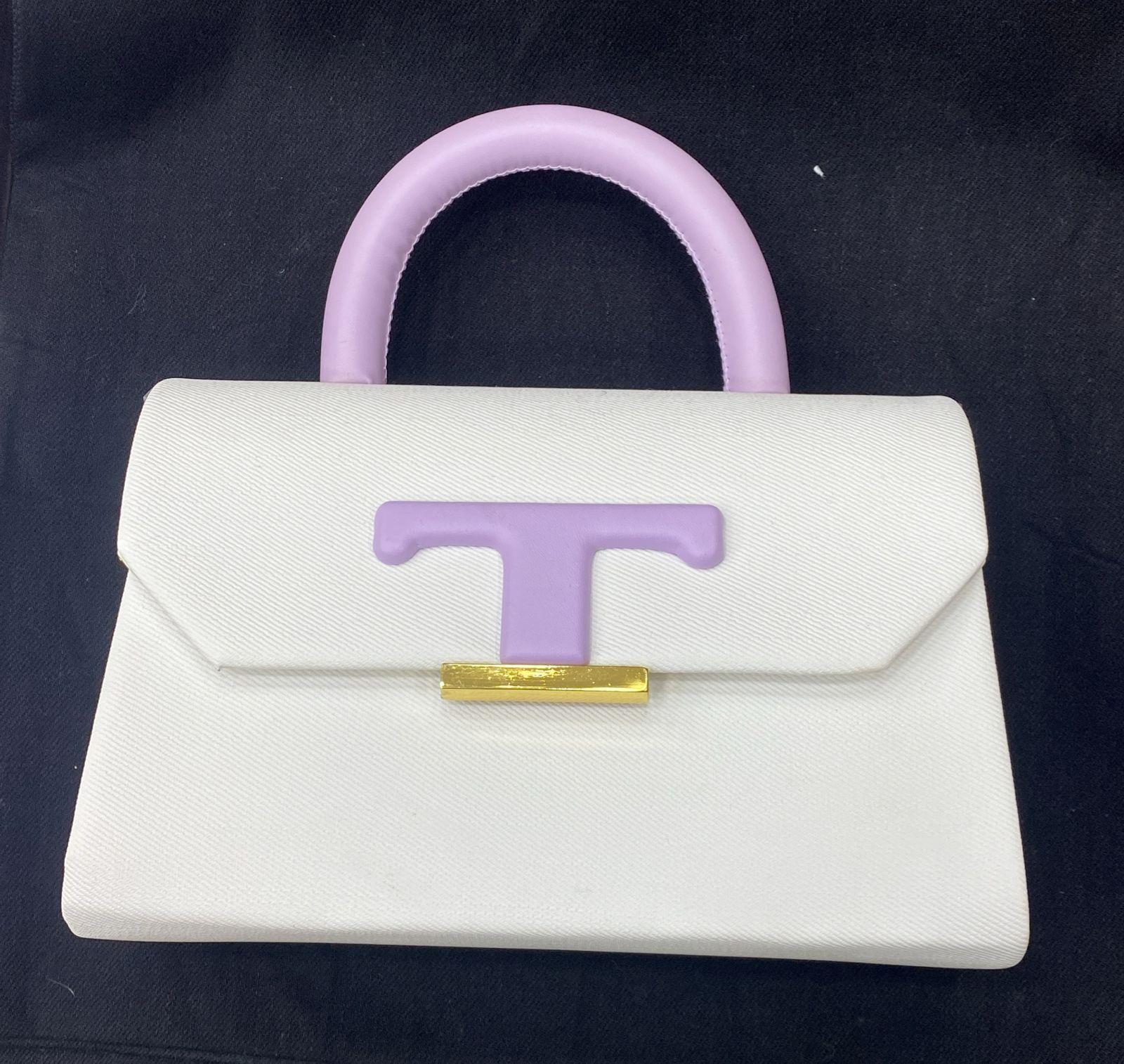 Sac à main raffiné au design moderne, couleur blanche avec détails rose pastel / bleu / orange ...