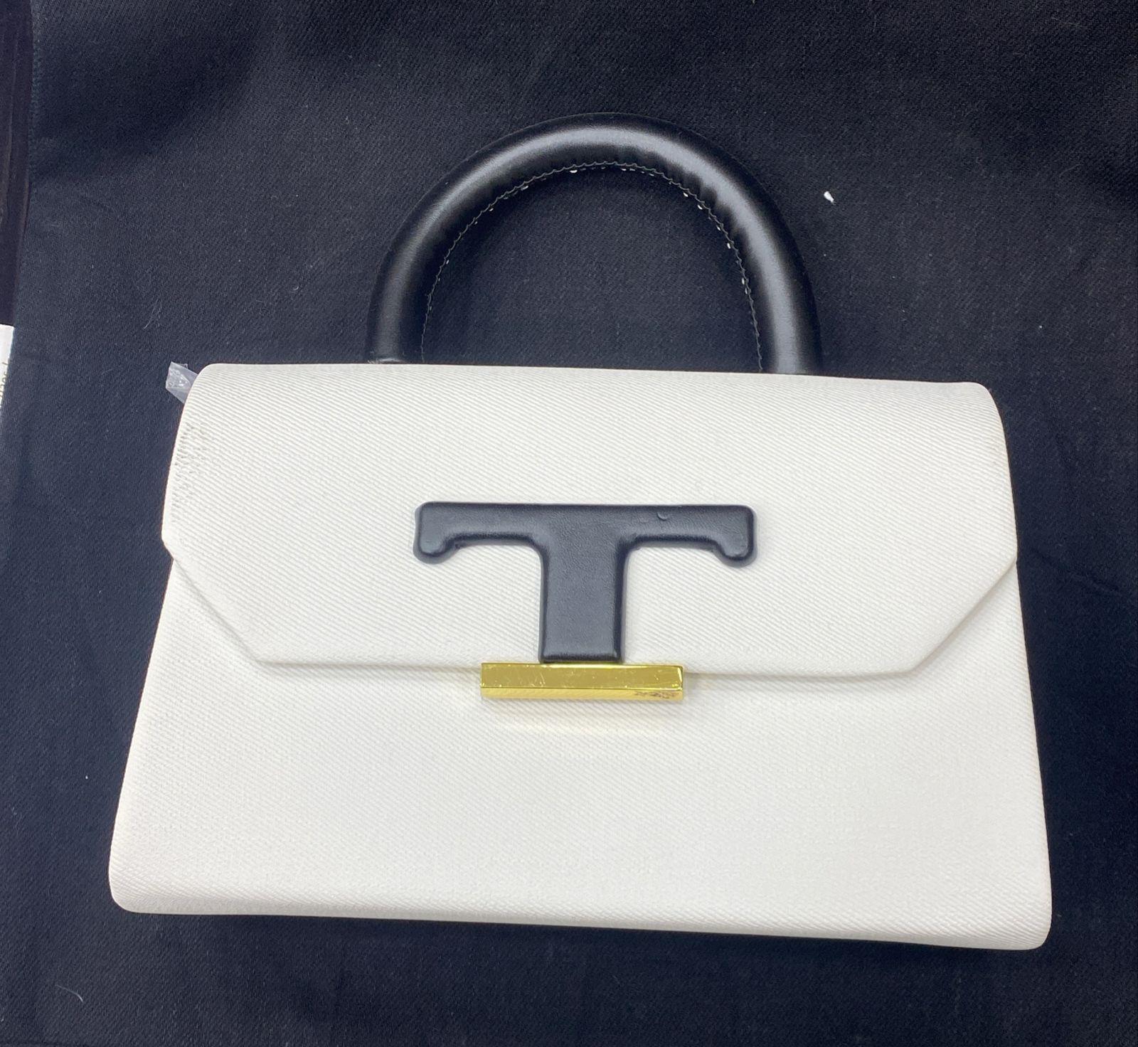 Fermeture élégante avec un logo en forme de T et finition dorée.